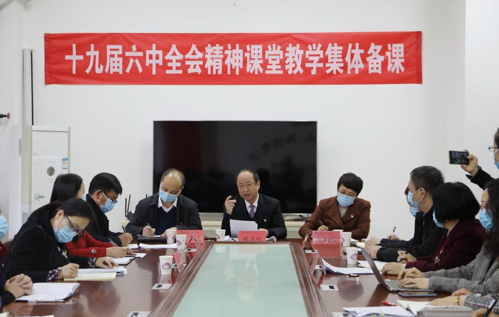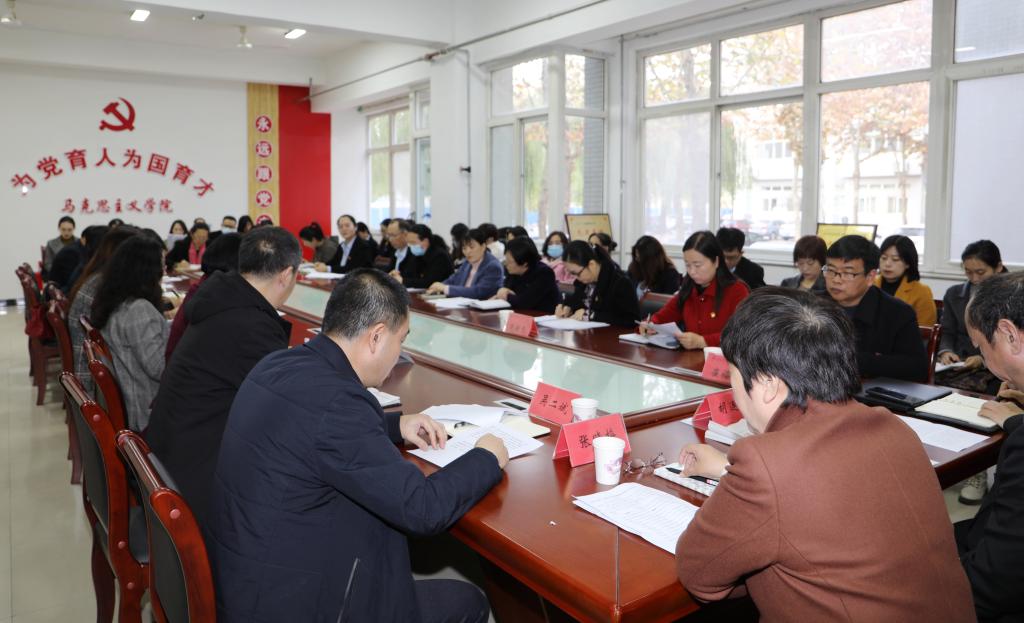 11月17日下午,我校举行思政课课堂教学集体备课会,深入学习宣传贯彻党的十九届六中全会精神。党委书记胡连利、党委副书记张晓梅,党委宣传部负责同志和马克思主义学院全体教师参加集体备课。