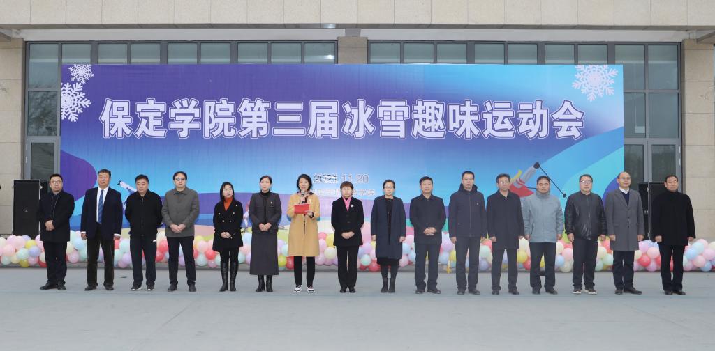 11月20日,保定学院第三届冰雪趣味运动会火热举行。校领导韩会玲、马丽娟,相关职能部门、各学院负责同志、裁判员、运动员代表参加开幕式。