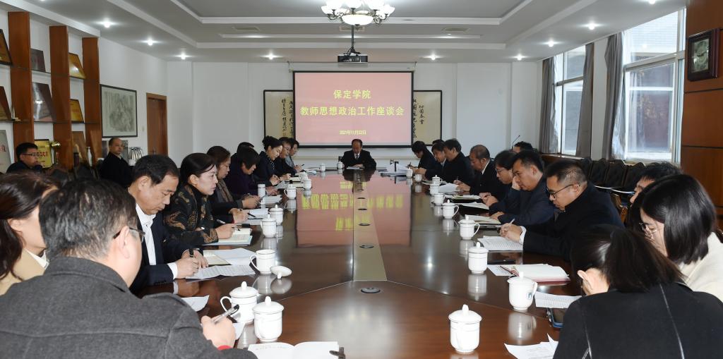11月22日上午,保定学院教师思想政治工作座谈会在行政楼第二会议室召开。党委书记胡连利,党委副书记张晓梅,党委常委、副校长马丽娟,党委常委、副校长赵其国出席会议。办公室、党委组织部、党委宣传部、工会、人事处、教师发展指导中心、各二级学院负责同志和教师代表参加会议。