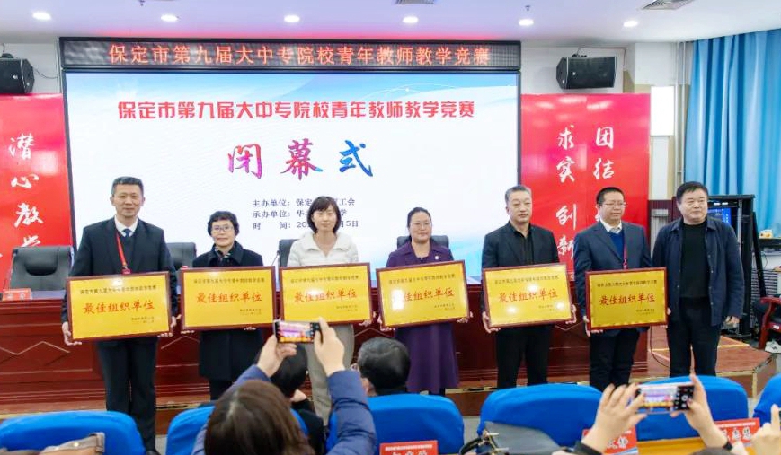 12月3日至5日,由市教育工会主办的保定市第九届大中专院校青年教师教学竞赛在华北电力大学举行,14所驻保大中专院校的75名青年教师参加比赛,经过激烈角逐,我校文物与博物馆学院梁若雪荣获文科组一等奖;生物化工与环境工程学院高兰、信息工程学院王倩、马克思主义学院康许培分获理科组、文科组、思政组二等奖;生物化工与环境工程学院周悦、信息工程学院赵晓芸分获理科组、工科组三等奖。我校获得“最佳组织单位”奖。