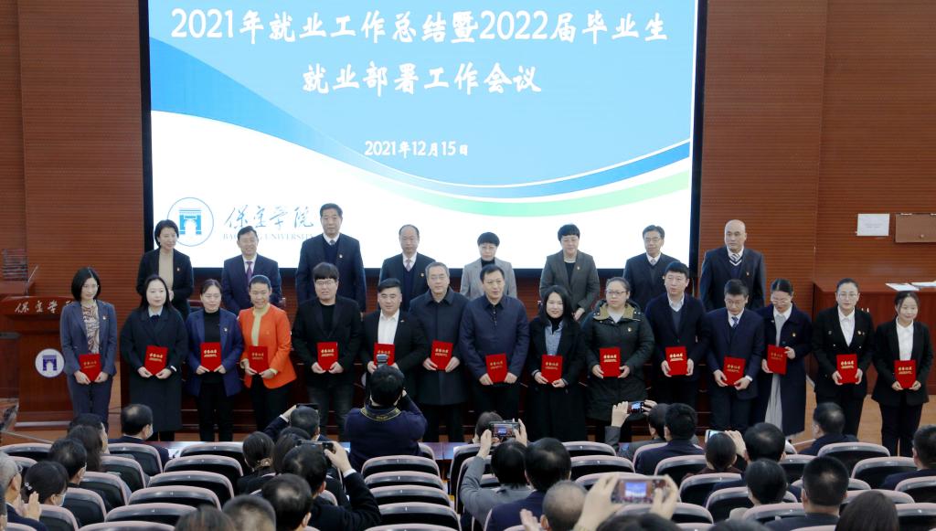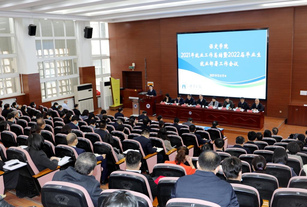 12月15日上午,保定学院2021年就业工作总结暨2022届毕业生就业部署工作会议在昌绪学术厅举行。校领导胡连利、韩会玲、刘清波、张晓梅、汤志江、徐景星、马丽娟、孙斌,相关部门、各学院负责同志和全体辅导员参加会议。