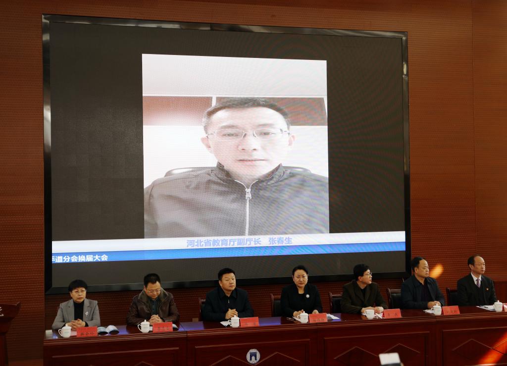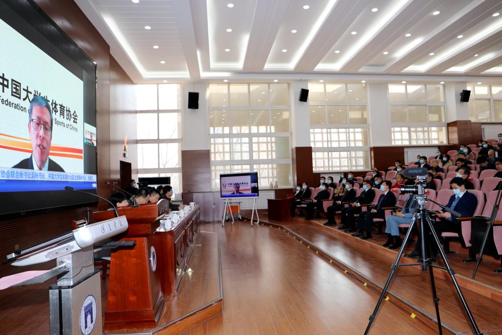 1月6日上午,中国大学生体育协会空手道分会换届大会在我校昌绪学术厅举行。大会采用线下会议与线上直播相结合的方式进行。教育部学生体育协会联合秘书处副秘书长、中国大学生体育协会副主席兼秘书长张爱龙,河北省教育厅副厅长张春生以视频形式参会。保定市人民政府副市长杨伟坤、中国大学生体育协会协会事务部主任李兵、河北省教育厅体育卫生艺术教育处处长石岩、河北省大学生体育协会秘书长田振生、保定市体育局副局长刘建新、中国大学生体育协会竞赛部项目主管胡京敏、保定市武术协会主席李志和,我校校领导胡连利、韩会玲、汤志江、马丽娟、赵其国,中国大学生体育协会空手道分会各会员单位及驻保高校代表,我校中层干部、体育学院全体教师参加现场会议。中国大学生体育协会协会事务部副主任郝俊主持会议。