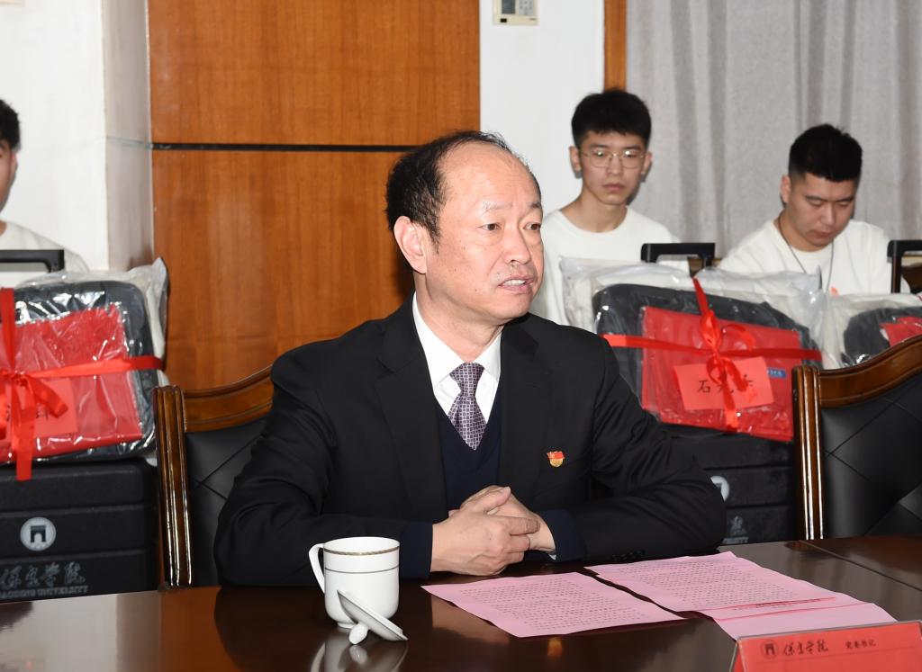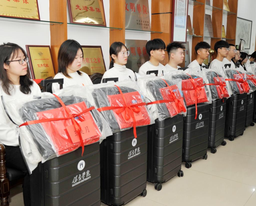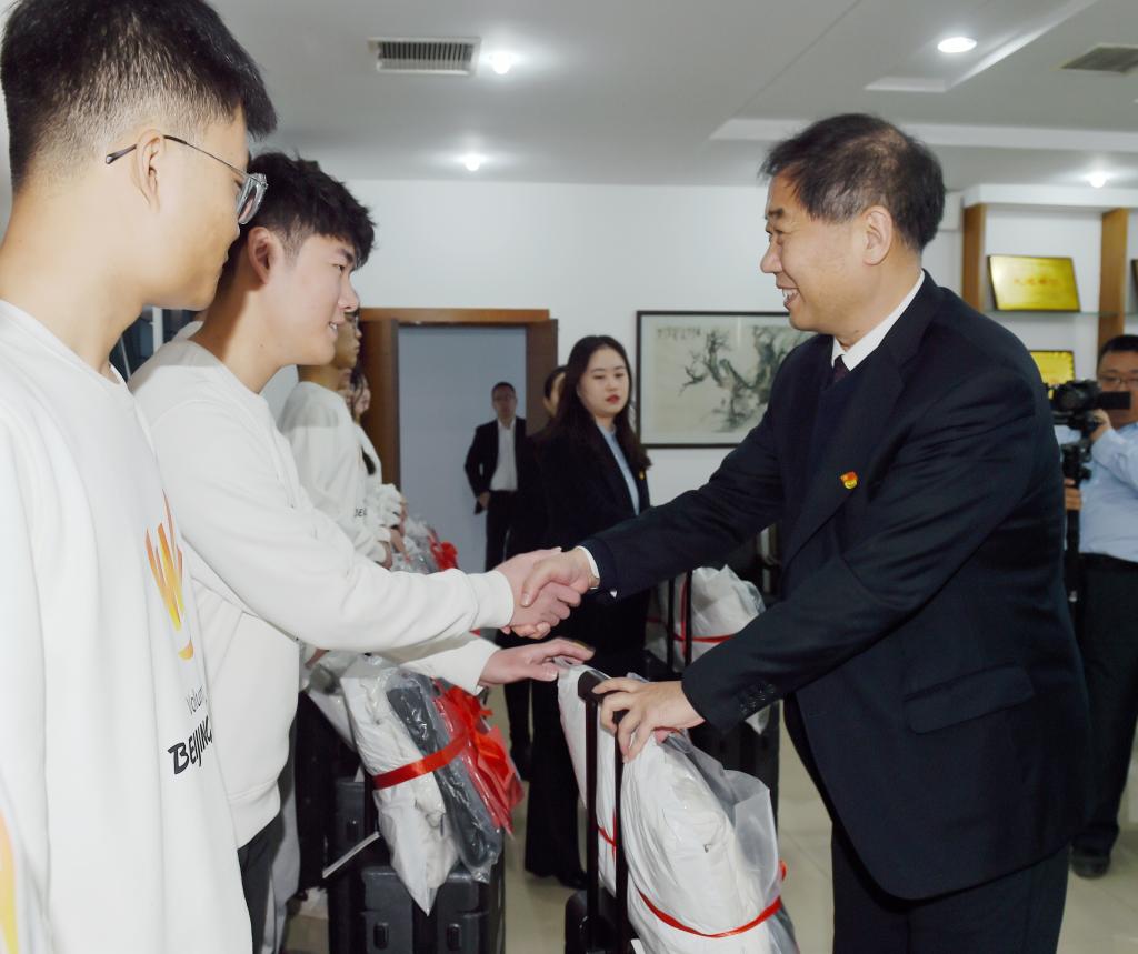 会上,胡连利、韩会玲、刘清波给每位志愿者发放了行李箱、防寒衣物、防疫用品等激励保障物资。