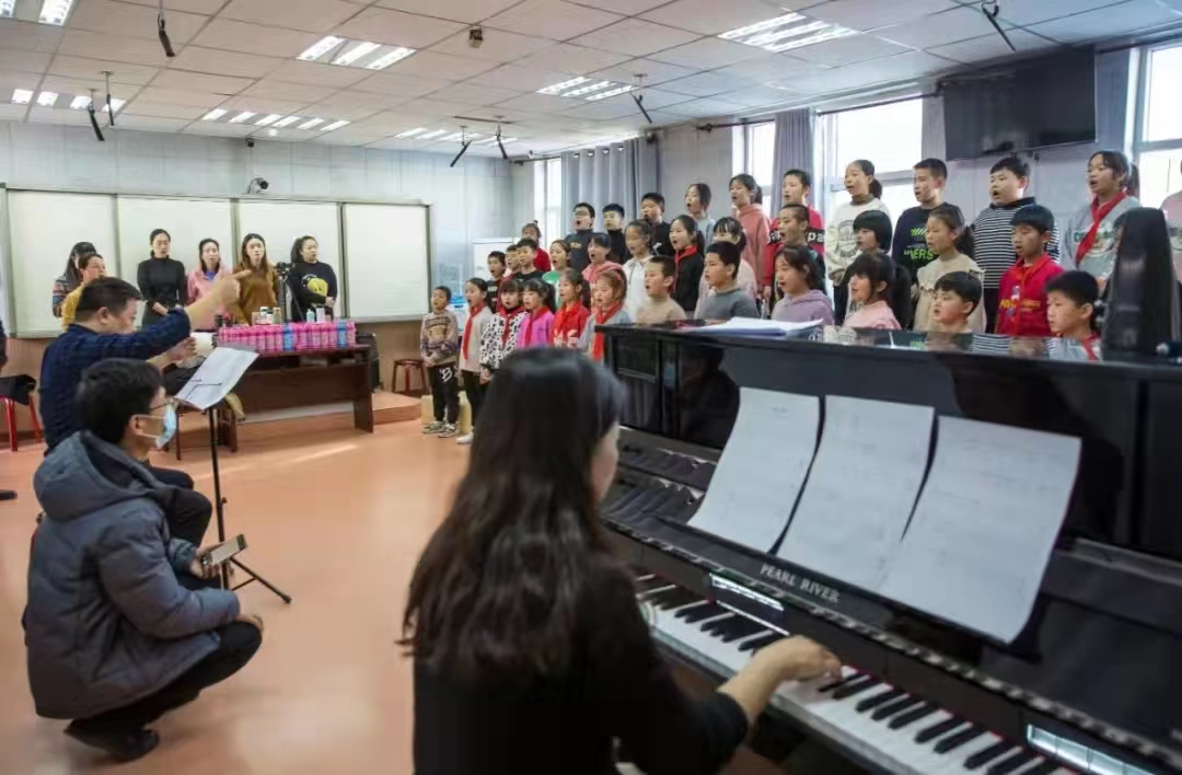 如何在短短三个月的时间里把合唱零基础的孩子们送到国际舞台,把不可能变成可能,我校教师团队用出色的教学能力给出了最有力的答案。几十名从山区各个学校选拔而来的、没有任何专业基础、年龄不同的孩子,要用希腊文演唱奥林匹克会歌这首难度极大的童声合唱作品,时间紧,任务重,传统的音乐教学行不通,所以张红玉带领团队采用全新的教学和训练方式——让孩子们在游戏中掌握歌曲的旋律和演唱方法,从而迅速实现了从零到高级的跨越。