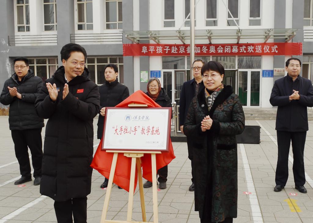 会上,韩会玲与阜平县委副书记、县长王占祥代表校地双方为“大手拉小手”教学基地揭牌。