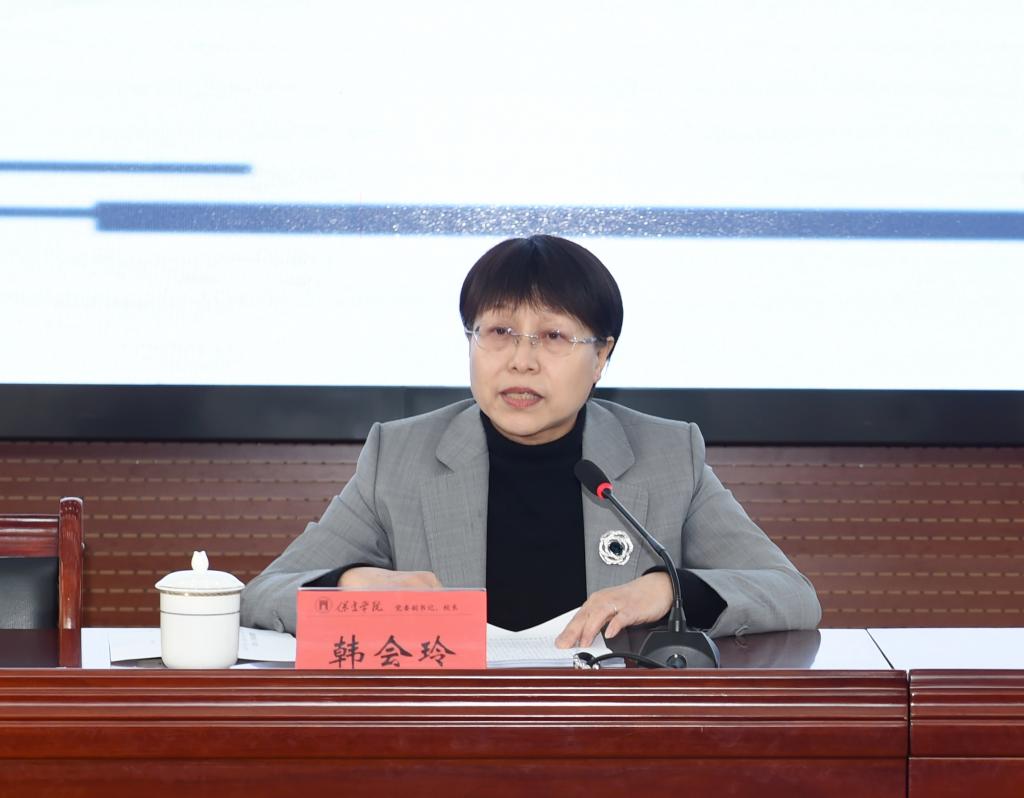 党委副书记、校长韩会玲以《锚定目标 赋能奋进 铸就未来 以“十四五”发展规划为引领 加快推进高水平应用型大学建设》为题,从当前学校面临的机遇与挑战、学校办学定位、十四五开局成效、今后一个时期重点工作以及保障“十四五”规划落地见效等五个方面授课。她强调,全校中层干部要增强责任感、紧迫感、使命感,围绕建设“符合新时代要求、受人尊重、特色鲜明的地方高水平应用型大学”的办学定位,立足新时代,抢抓新机遇,开启新征程,再创新佳绩。