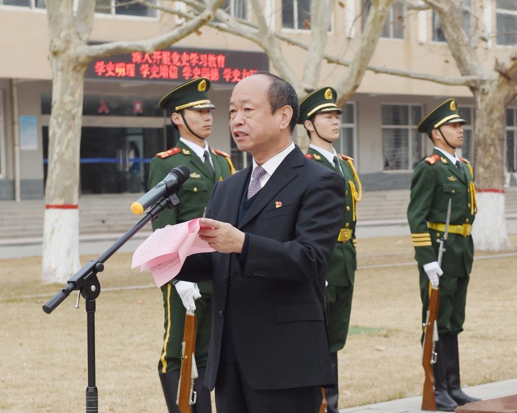 党委书记胡连利作国旗下讲话。他强调,我们要淬炼思想,砥砺坚如磐石的信仰之力。始终不渝地坚持党的领导,高举习近平新时代中国特色社会主义思想伟大旗帜,为党育人、为国育才。我们要不忘初心,砥砺铸魂育人的为民之力。不断优化师生成长发展环境,不断提升师生成长的“质量指数”和“幸福指数”。我们要担当实干,砥砺攻坚克难的奋斗之力。以事不避难、义不逃责的担当开创工作新局面,知责于心、担责于身,在实干苦干中提升能力。胡连利激励广大师生:每一次开学,都是审视初心再出发的契机,让我们把希望的种子播撒在时代芳华之中,踔厉奋发,笃行不怠,以优异的成绩迎接党的二十大胜利召开!