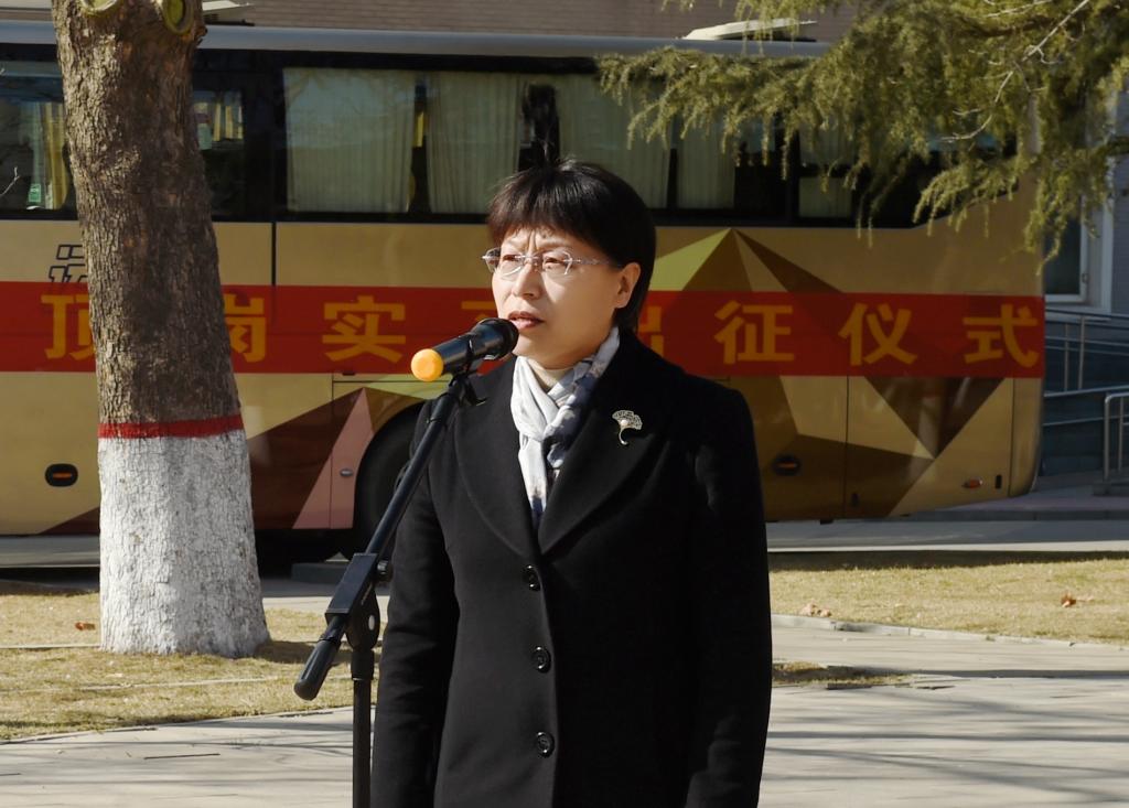 出征仪式后,87名学生即刻出发奔赴容城县,将在幼儿园、中小学等20所基础教育学校进行为期4个月的顶岗实习工作。