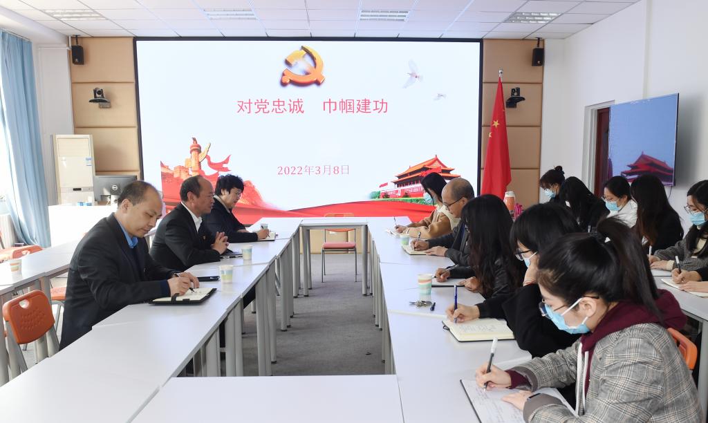 3月8日上午,党委书记胡连利、党委副书记张晓梅到文学院调研指导“学习强国”放映厅和《荷风》杂志工作。党委宣传部负责同志陪同调研。