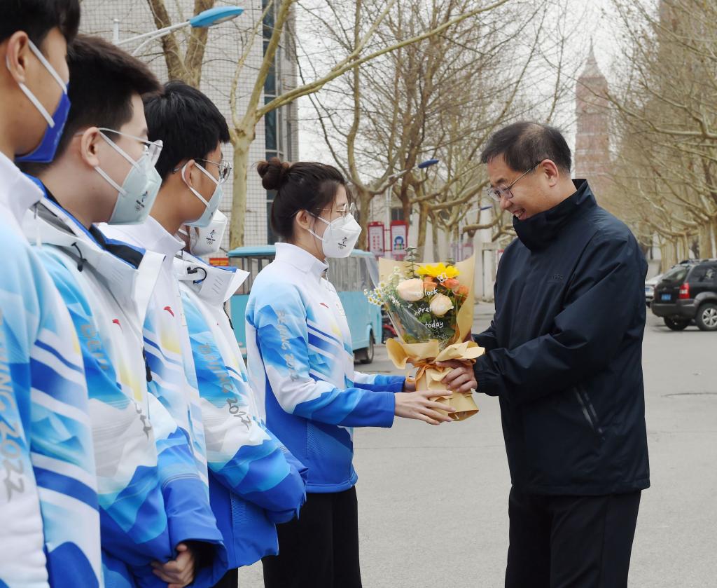 3月13日,我校首批12名冬奥会志愿者圆满完成工作任务,结束隔离和健康监测顺利返回学校。党委副书记刘清波带领团委、相关学院负责同志和师生代表早早等候在学校门口,欢迎志愿者们回家。