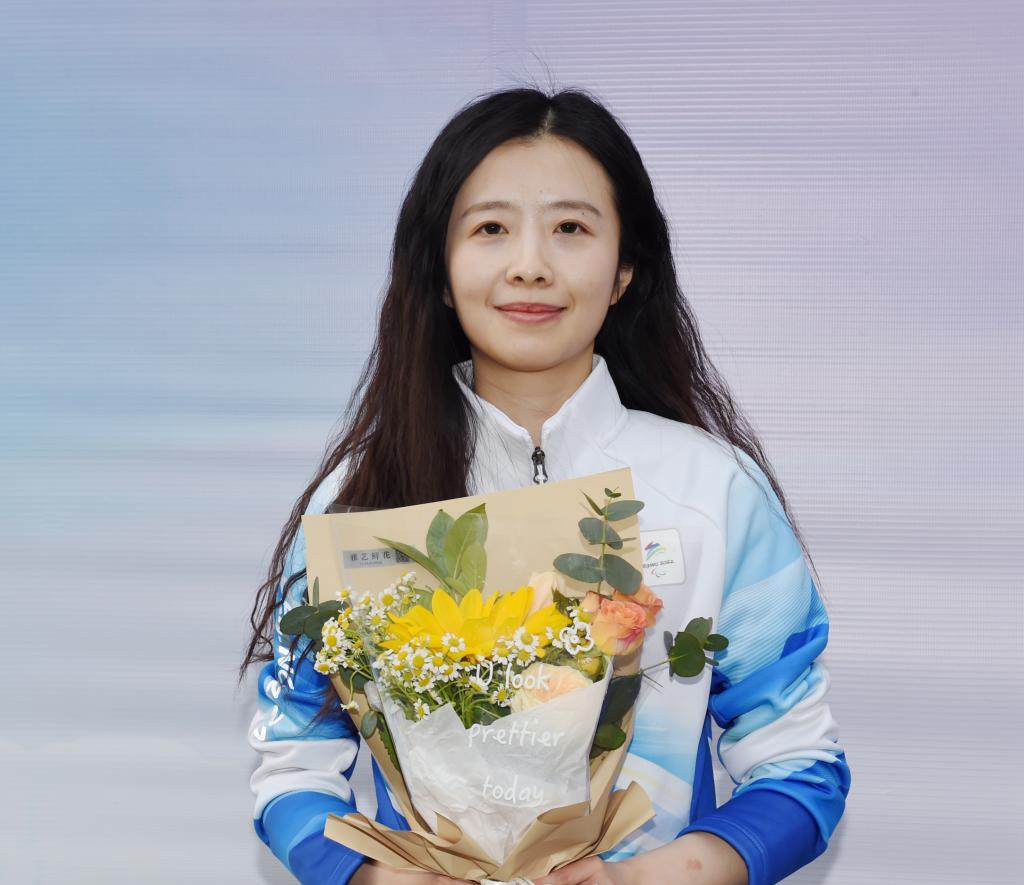 韩会玲将欢迎的花束送到每位志愿者手中,并代表学校对大家数月来的奉献表示感谢。她希望志愿者们把服务冬奥会、冬残奥会过程中的收获转化为今后学习、生活的不竭动力,讲好冬奥故事,传播志愿精神,在服务人民、奉献祖国中实现人生价值,奋力抒写“请党放心、强国有我”的青春华章。