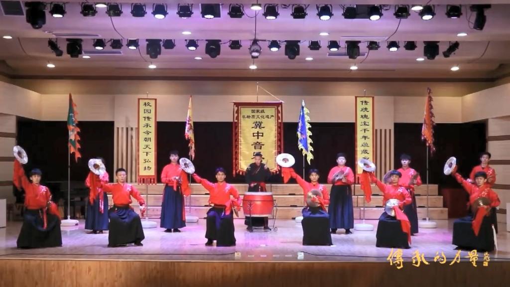 节目中还展播了我校音乐舞蹈学院学生表演的《河西钹》,《河西钹》是国家级非遗项目“冀中音乐会”的传统打击乐曲目。