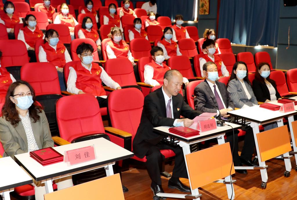 大会为知识产权志愿者联盟授旗,并为志愿者代表颁发证书。经济管理学院志愿者代表在我校分会场现场宣誓。