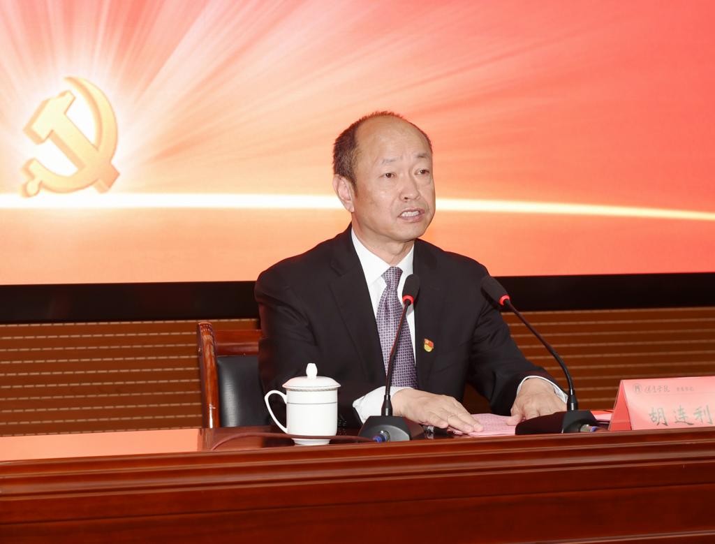 胡连利强调,办好中国特色社会主义大学必须坚持以习近平新时代中国特色社会主义思想为指导,牢牢抓住培养什么人、怎样培养人、为谁培养人的根本问题,坚持办学政治方向,深入研究把握青年成长规律,建设高素质教师队伍,培育高水平人才培养体系,坚决担负起为党育人、为国育才的政治使命和政治责任。要坚持党的全面领导不动摇,要坚持用习近平新时代中国特色社会主义思想定向领航、立德树人,要坚持创新驱动、多措并举全面提升人才培养质量。
