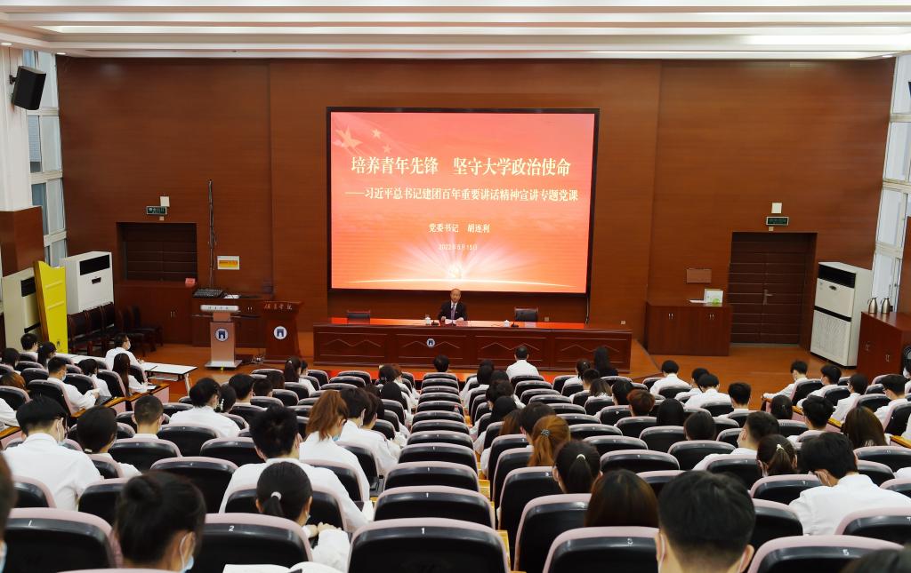 为深入学习贯彻习近平总书记在庆祝中国共产主义青年团成立100周年大会上的重要讲话精神,5月15日晚,党委书记胡连利以《培养青年先锋 坚守大学政治使命》为题,在昌绪学术厅为全校团学干部代表上党课。