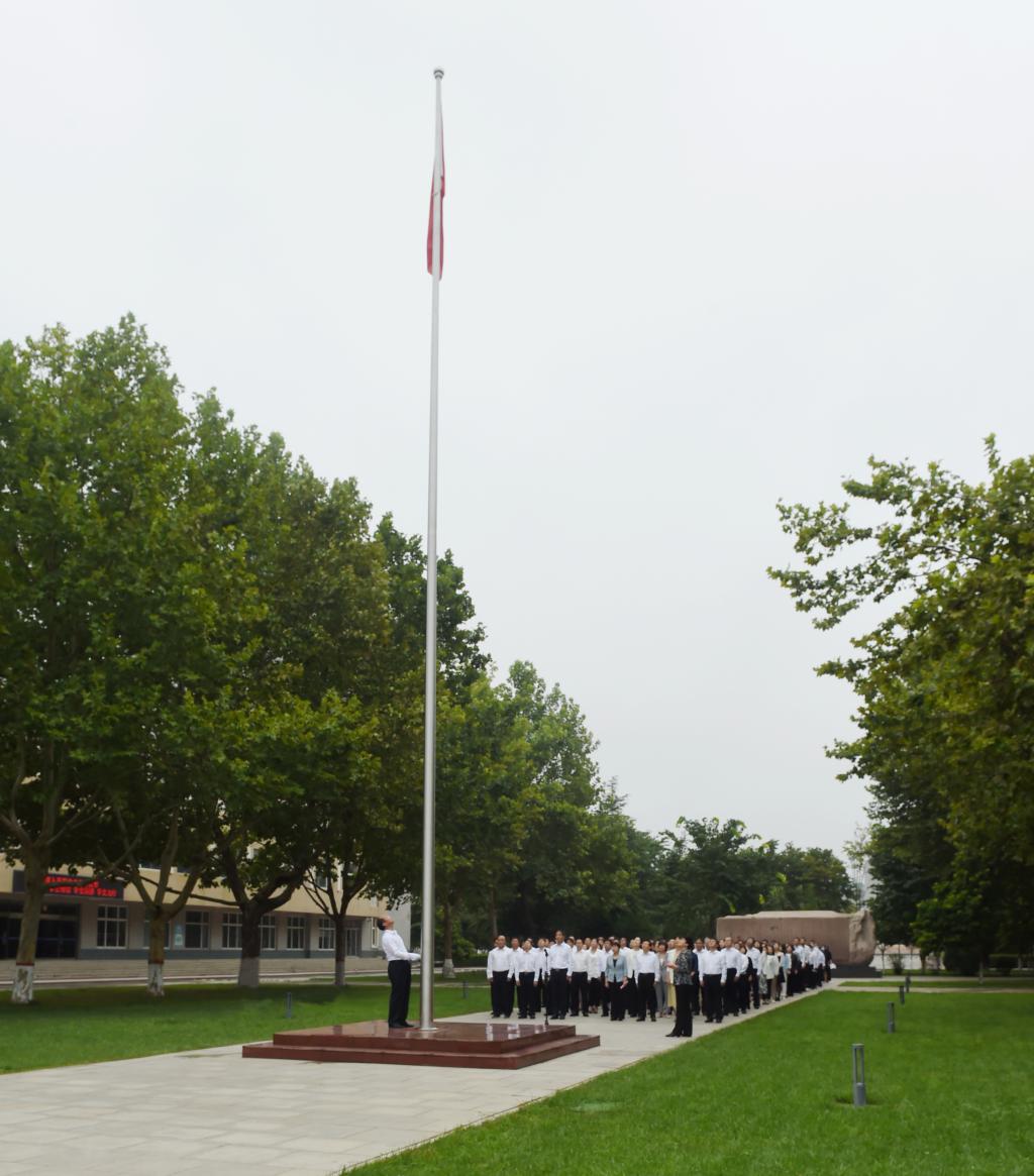 当雄壮的国歌声响起,党委书记胡连利奋臂展旗,将鲜艳的五星红旗徐徐升起。全体与会人员面向国旗庄严肃立,行注目礼。