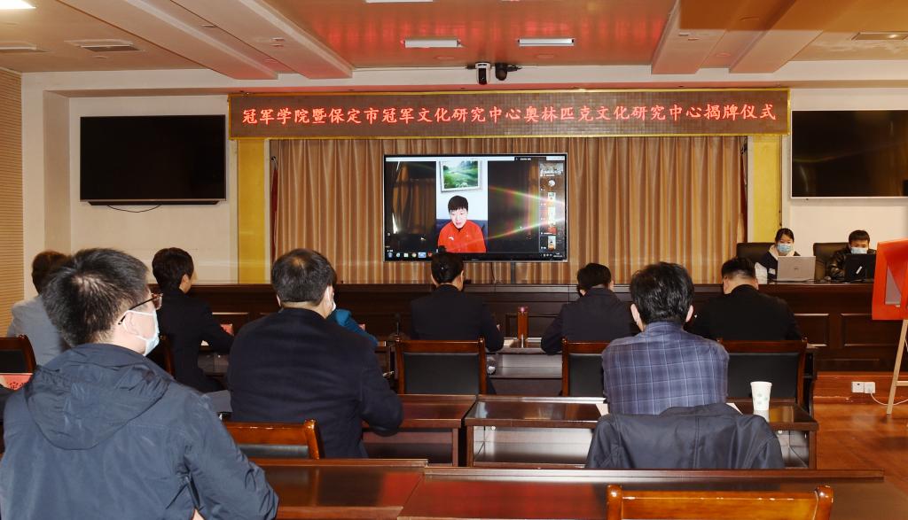 仪式采取线上线下相结合方式举行。保定市政府、保定市体育局、保定市教育局和我校相关人员参加活动。此后,冠军学院将坚持以体育人、以文化人,利用重大赛事资源或社会资源开展体育冠军进校园活动,通过举行报告会、开展专业指导,使大中小学生与优秀运动员零距离接触,通过与冠军的互动,感受体育运动的魅力和冠军精神的力量。保定市冠军文化研究中心将坚持体育、教育与文化融合发展,努力构建冠军文化与教育交流合作的纽带。奥林匹克文化研究中心将通过聚焦奥林匹克教育,以体育文化为主题开展活动,展现中华优秀文化和价值观,服务“奥运冠军之城”文旅发展。