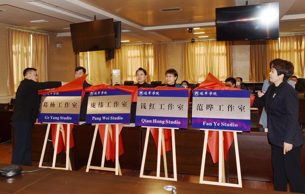 张晓霞、金天星共同为我校设立的钱红工作室、庞伟工作室、葛杨工作室、范晔工作室揭牌。
