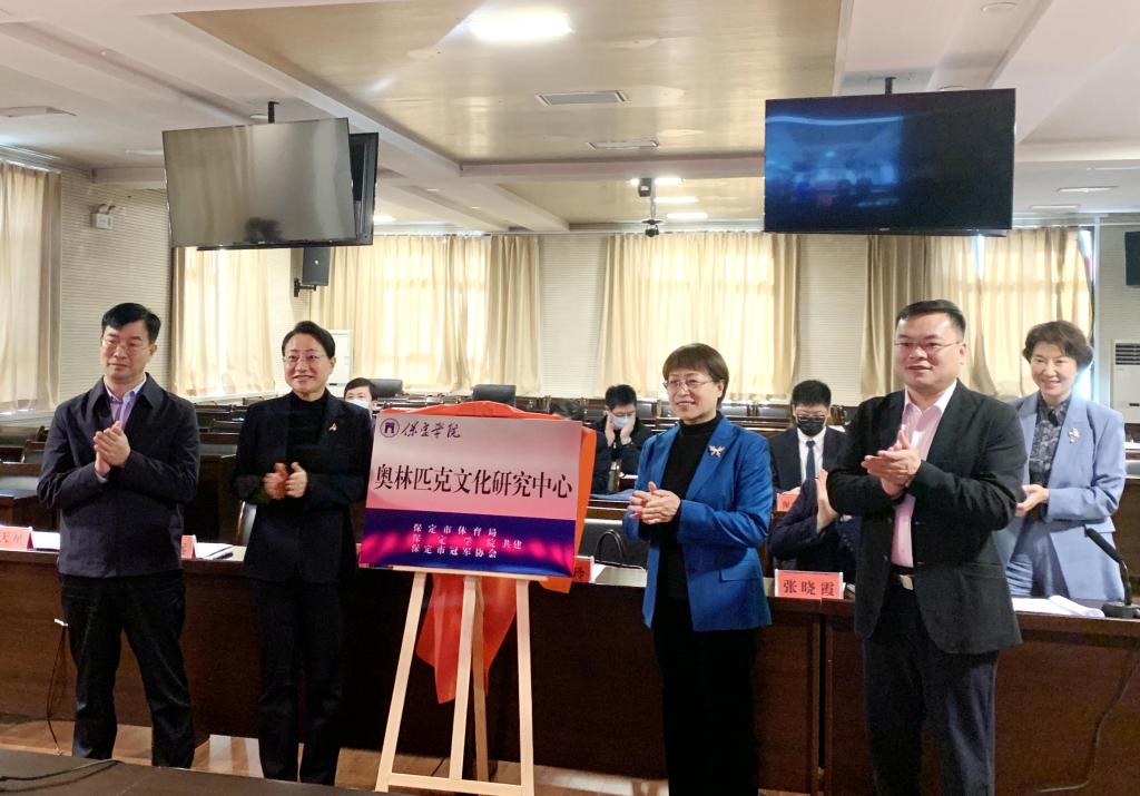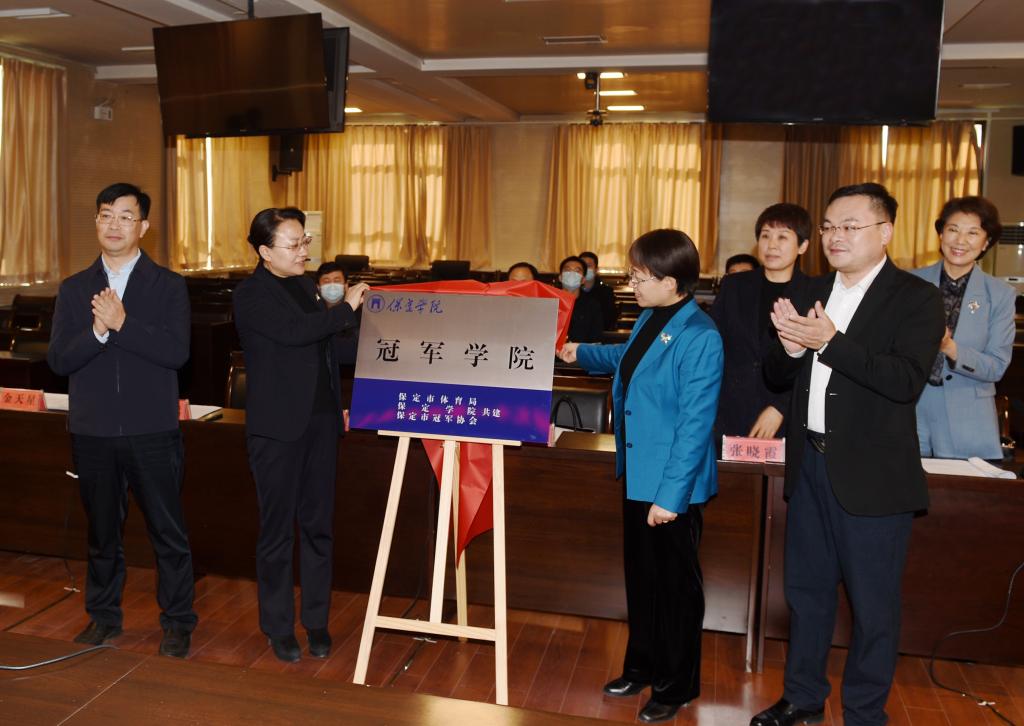 为贯彻落实市委十二届四次全会精神,进一步讲好冠军故事、传承冠军文化、弘扬冠军精神、培育时代新人,让保定冠军成为精神引领、资源汇聚的蓬勃力量,经保定市政府同意,由保定市体育局、保定市教育局和我校共建冠军学院,并成立保定市冠军文化研究中心、奥林匹克文化研究中心。11月17日上午,冠军学院暨保定市冠军文化研究中心、奥林匹克文化研究中心揭牌仪式在保定市教育局举行。