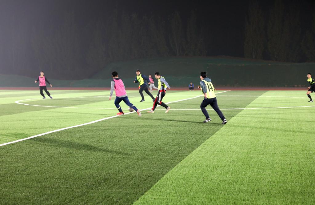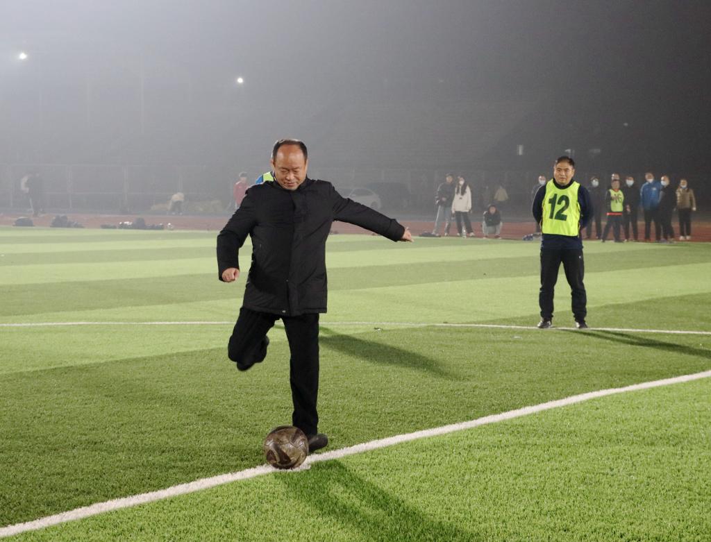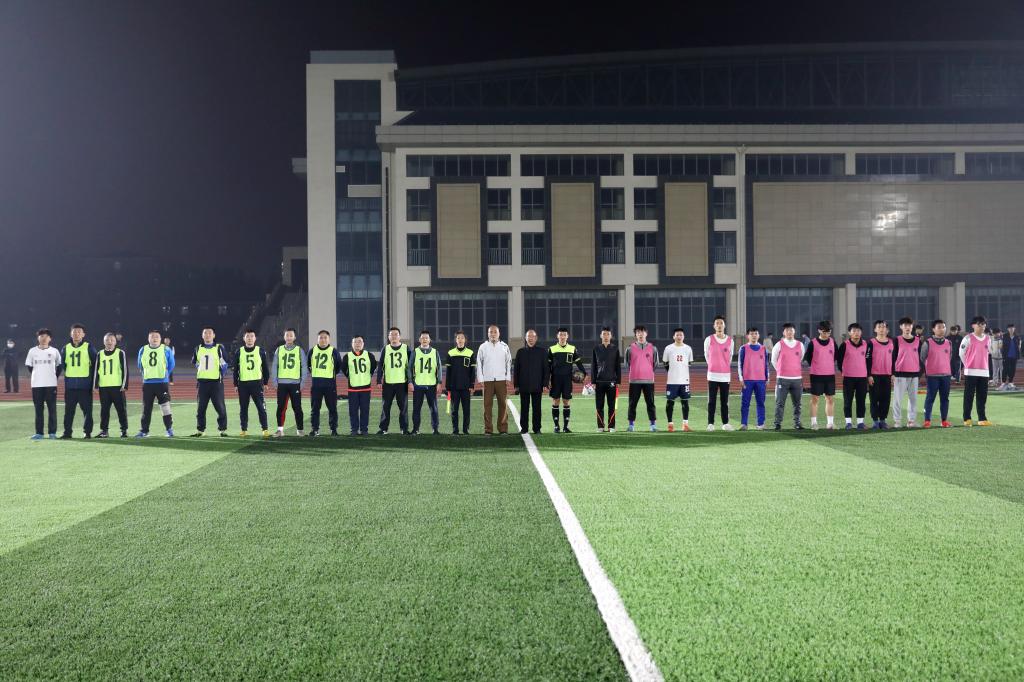 11月18日晚,一座灯火通明的体育场,在校园的夜色中显得格外醒目,随着师生足球友谊赛的开赛哨声吹响,党委书记胡连利在我校新体育场中心为比赛开球,这标志着新体育场正式投入使用。党委常委、副校长孙斌参加启用活动并指导观战。