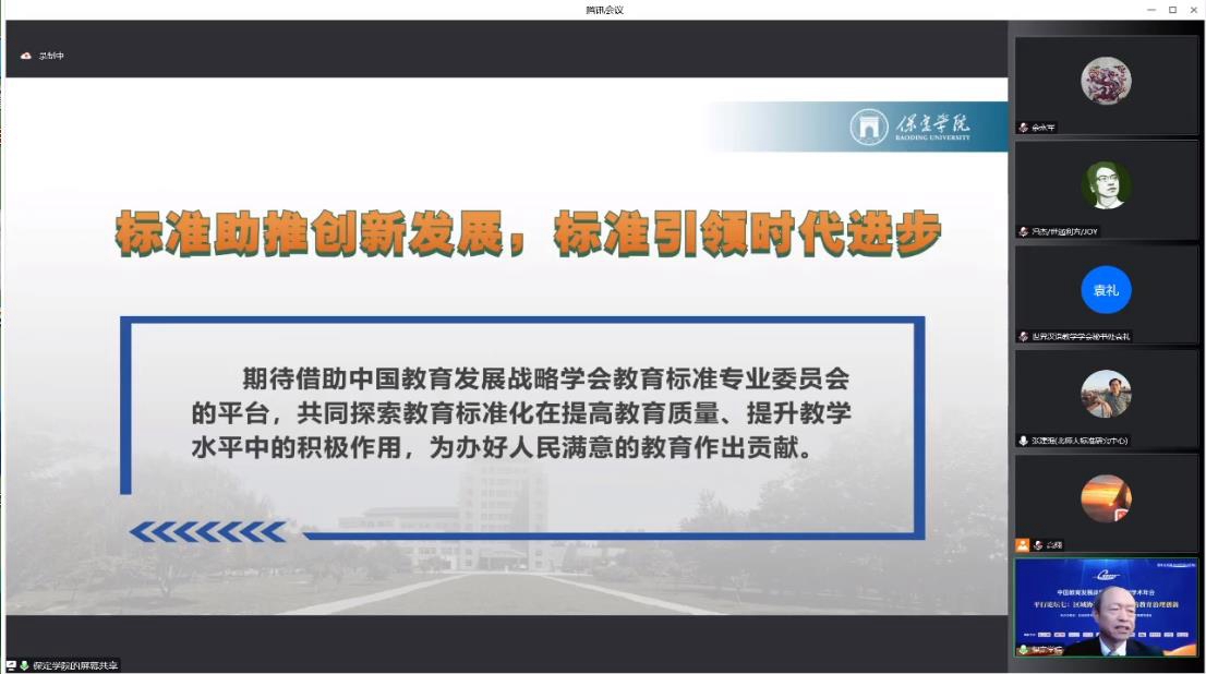 胡连利以《标准化助力应用型本科教育高质量发展》为题,向与会代表详细介绍了保定学院持续贯彻新发展理念,坚持扎根地方、面向应用、面向需求、面向社会,通过标准化的方法系统推动应用型高校实现高质量、内涵式发展的实践与成果。他强调,探索应用型本科教育高质量发展是一项系统化、科学化、复杂化工程,促进应用型高校高质量发展,深化评价标准建设具有基础性、前瞻性的价值和意义,要在重点领域和关键环节实现率先突破,离不开创新驱动和跨界融合。在报告中,胡连利围绕深刻领会国家教育标准化实施战略布局、应用型本科教育标准化工作探索与实践、国家级教育标准化试点建设推进与实施等方面作了深入阐释。