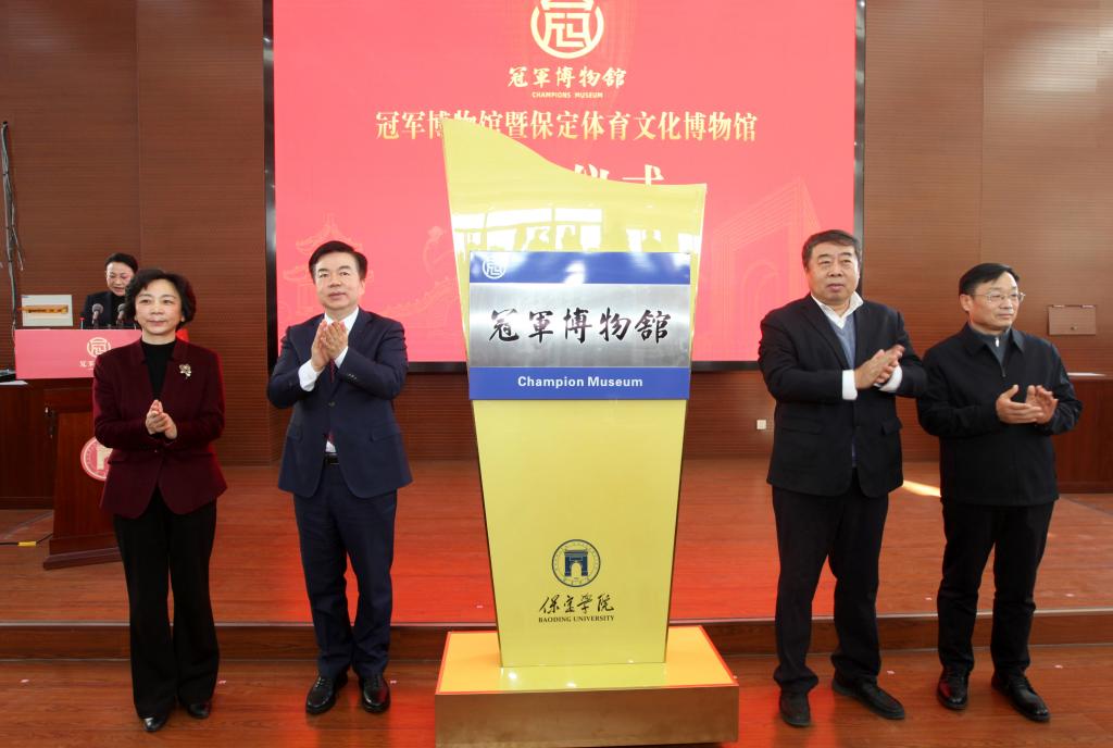 12月27日,我市冠军博物馆暨保定体育文化博物馆开馆仪式在我校昌绪学术厅举行。郭晶晶等保定籍冠军代表以视频方式为家乡送祝福。奥运冠军庞伟、残奥冠军葛杨出席并发言。保定籍冠军代表钱红、范晔以及李冰洁、张一璠家人出席。市委书记党晓龙为博物馆揭牌。国家体育总局排球运动管理中心竞赛部主任蔡毅,市委副书记、市长闫继红,省体育局副局长田建功揭牌并致辞。
