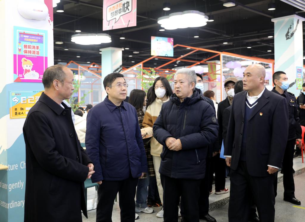 程杰对我校食品安全工作的制度、举措、成效表示肯定。他指出,要深入学习贯彻习近平总书记关于食品安全工作的重要指示批示和重要讲话精神,按照市食安委《建立健全分层分级精准防控末端发力终端见效工作机制 推动食品安全属地管理责任和企业主体责任落地落实实施方案》和《市领导包保食品生产经营A级主体的工作方案》要求,完善管理体系,扎实做好基础工作,积极配合落实食品安全属地管理责任,将食品安全作为重点工作常抓不懈,全力筑牢食品安全防线。