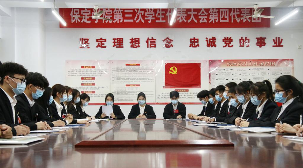 大会期间,全体代表认真听取并审议通过了保定学院学生会《不忘初心跟党走 踔厉奋发新征程 为建设符合新时代要求、受人尊重、特色鲜明的地方高水平应用型大学贡献青春力量》的工作报告。大会选举产生了保定学院第三届学生委员会。