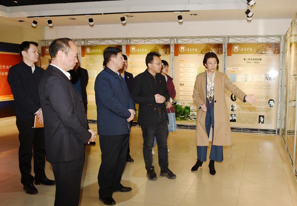 我校党委书记胡连利,党委副书记刘清波,党委常委、副校长马丽娟陪同张朝晖一行参观了习近平总书记回信石广场、理想的力量——保定学院百年办学史志影像、红旗的召唤——保定学院西部支教主题展馆等德育基础设施和“赓续雷锋精神 争做时代新人”志愿服务项目展。
