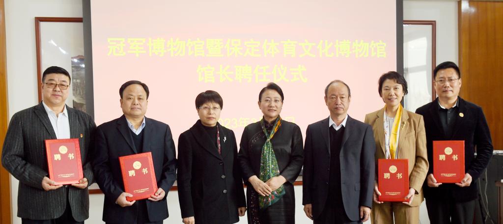 杨伟坤为冠军博物馆首任馆长马丽娟颁发馆长聘书,胡连利、韩会玲分别为刘建新、吕金起、张秋波颁发副馆长聘书。