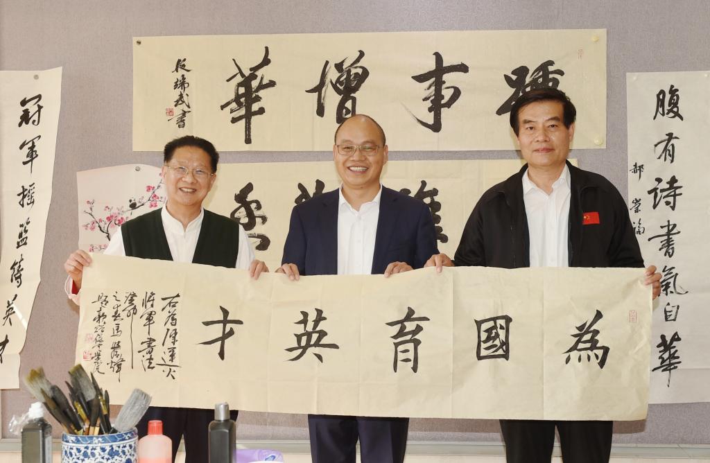 “放下枪杆拿笔杆,报国壮志励少年”。文学院书法交流中心内,将军们提笔挥毫,用一件件苍劲有力的书法作品鼓励青年学子。有的将军还走进书法教室,和书法专业的学生们面对面交流。