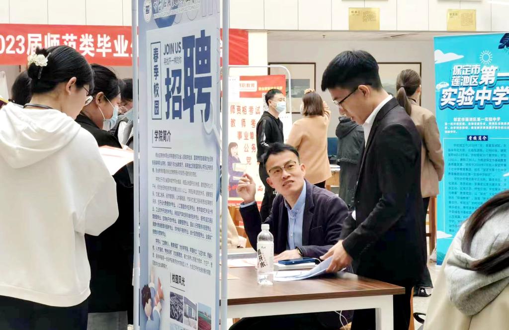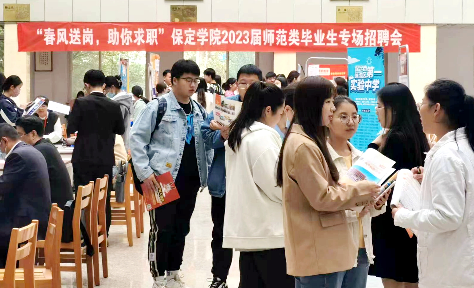4月15日,我校在图书馆一楼大厅举办“春风送岗,助你求职”2023届师范类毕业生专场招聘会,抢抓春招关键期,搭建就业供需平台,助力师范类毕业生更加充分更高质量就业。