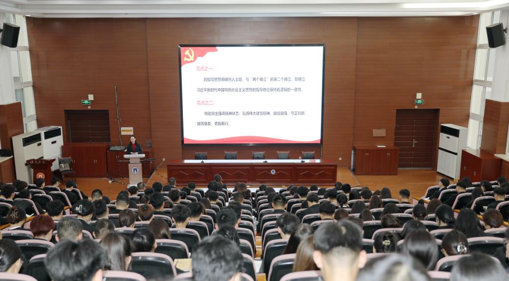表彰环节后,马克思主义学院教师周颖以《领会党的二十大精神 做新时代好青年》为题作讲座,紧紧围绕党的二十大主题,从深刻领会过去五年的工作和新时代十年的伟大变革、深刻领会马克思主义中国化时代化新境界、深刻领会中国式现代化、深刻领会全面建设社会主义现代化强国的战略部署、深刻领会坚持党的全面领导和全面从严治党等方面进行了系统阐释,希望大家牢记嘱托,脚踏实地,将爱国情、报国志化作奋斗新时代的实际行动,做有理想、敢担当、能吃苦、肯奋斗的新时代好青年。