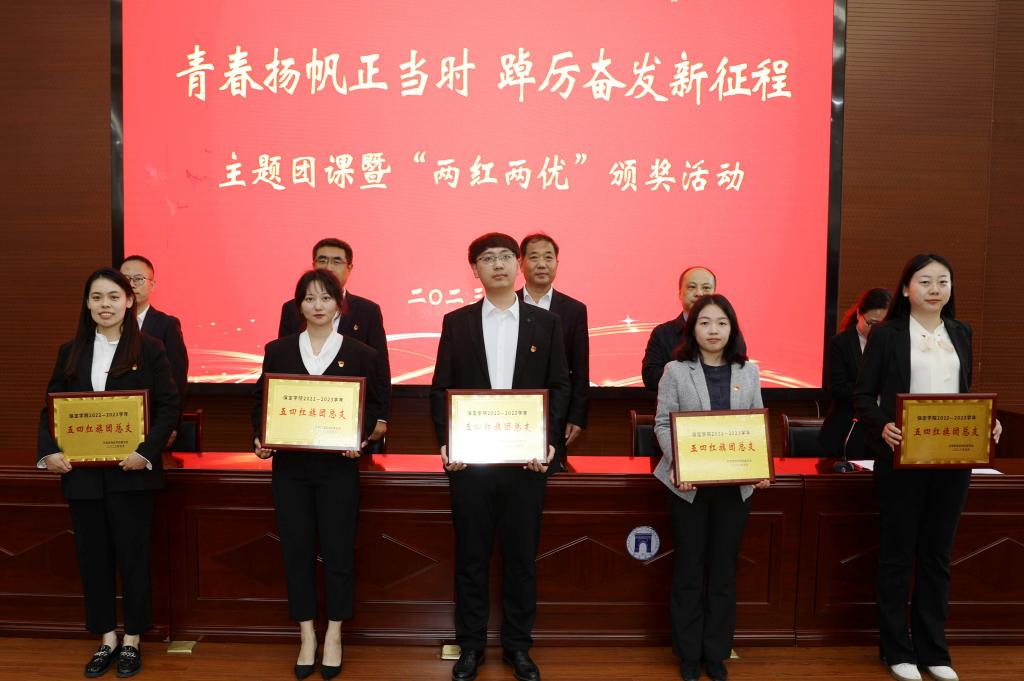 会上,宣读了《关于表彰2022—2023学年先进集体和先进个人的决定》。与会领导为河北省五四红旗团支部、保定市“两红两优”、“新时代保定好青年”、冬奥志愿者、校级先进集体和个人代表颁了奖。
