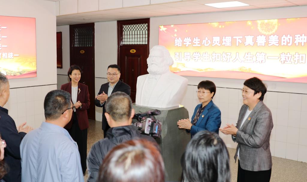 为缅怀马克思的伟大人格和历史功绩,在我校马克思主义学院举行了马克思雕像揭幕仪式,韩会玲、张晓梅、马丽娟、金天星共同为马克思雕像揭幕。