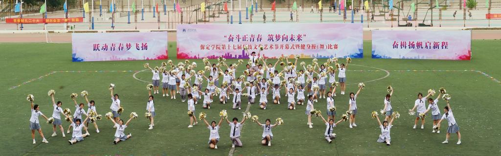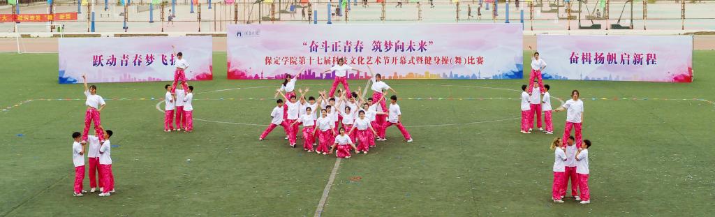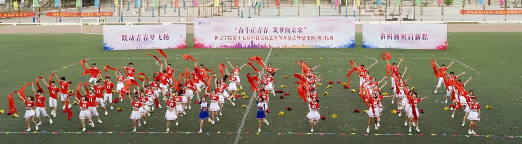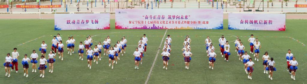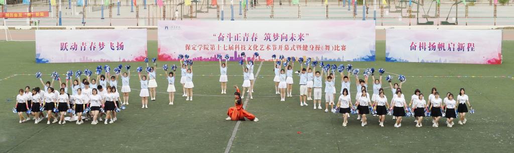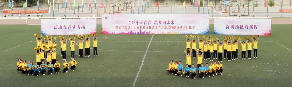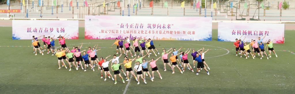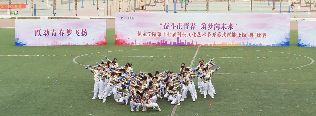 5月10日,保定学院第十七届科技文化艺术节开幕式暨“跃动青春梦飞扬 奋楫扬帆启新程”健身操(舞)比赛在体育场举行。团市委副书记续兆阳,驻保高校团委书记,我校校领导胡连利、韩会玲、刘清波、汤志江、赵其国和千余名师生参加开幕式活动。