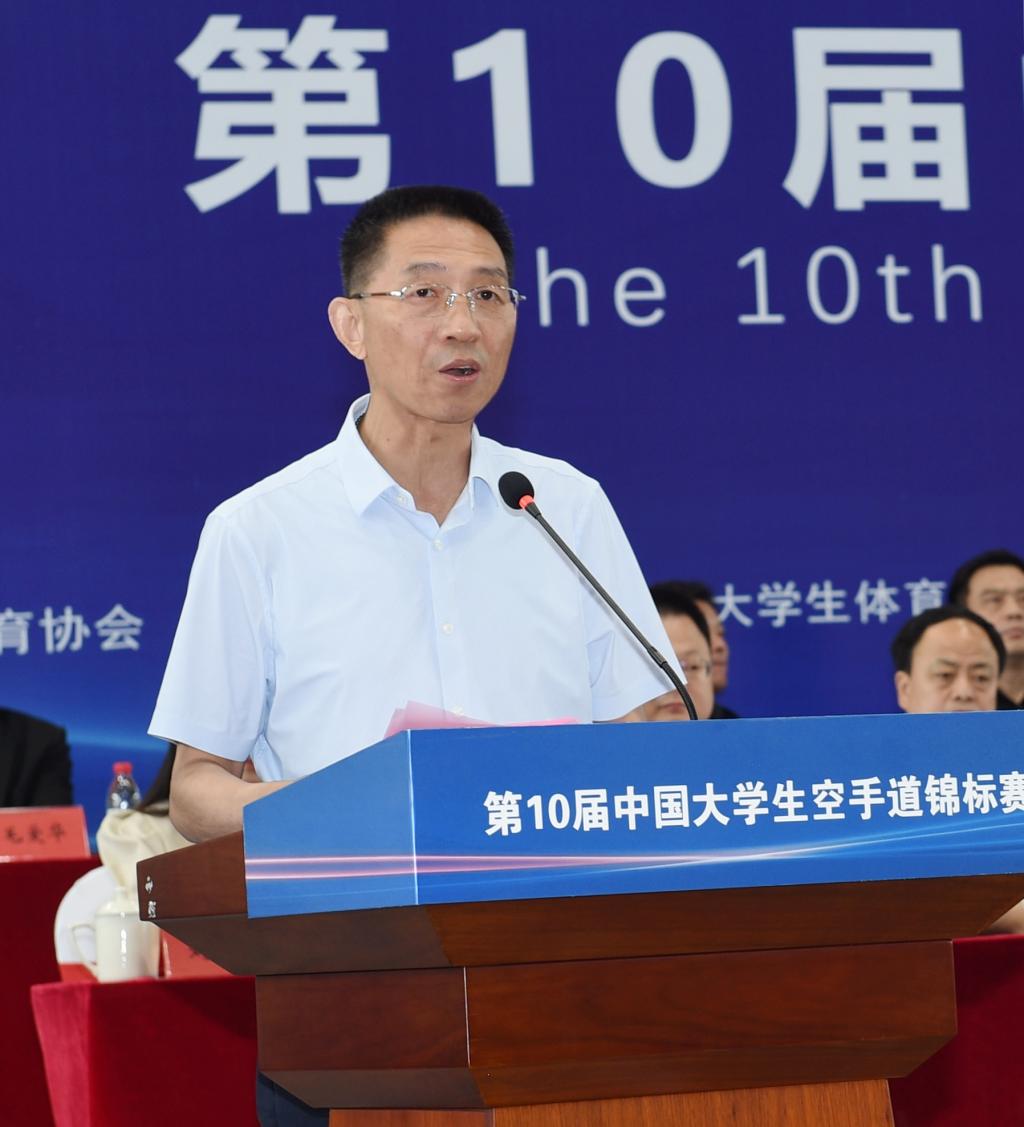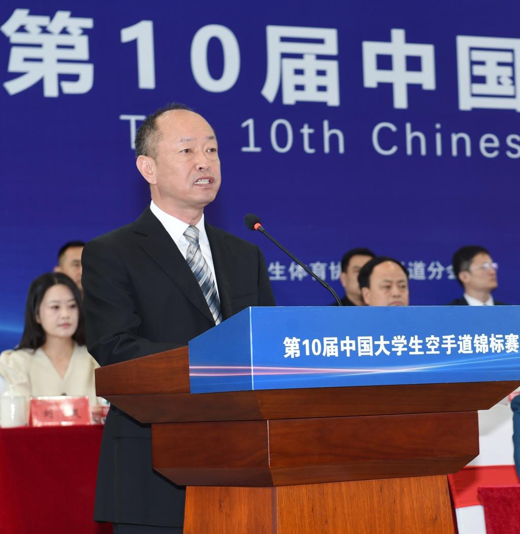 中国大学生体育协会空手道分会主席、我校党委书记胡连利在致辞中强调,保定学院建校以来一直秉承以体育人的传统,追寻着“强国必先强民,强民必先强体”的目标奋力奔跑。百余年来,体育传统和革命传统交相辉映,成为保定学院独特的精神气质。进入新时代,保定学院深入践行习近平总书记“体育强则中国强,国运兴则体育兴”的重要指示,扎实推进体教融合,至今,共获得全国大学生体育赛事冠军40余项。2022年,冠军博物馆落户保定学院,成为学校做好体育文化育人“大文章”,打造体教融合发展“大品牌”。党的二十大将教育、科技、人才进行统筹安排、一体部署,而大学生这个群体对于党和国家重大战略目标的实现有着极端重要的意义。期望数以万计的大学生参与到空手道运动中来,并通过体育强健体魄,锻炼意志。保定学院作为中国大学生体育协会空手道分会主席单位承办本次赛事,是荣耀,更是责任。我们愿意提供全部的努力做好一切服务。