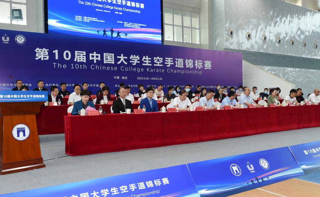 国家体育总局拳跆中心党委书记、主任张智,教育部学生体育协会联合秘书处工会主席、中国大学生体育协会常务理事王晓毅,河北省体育局一级巡视员李东奇,保定市人民政府副市长杨伟坤,中国空手道协会秘书长李向东,国家体育总局拳跆中心党办主任、中国空手道协会赛事活动部部长周涛,国际武术联合会裁判委员会主席苏长来,中国大学生体育协会竞赛部项目主管胡京敏,国际健身气功联合会主席、龙采体育集团党委书记、董事长杨春波,河北省教育厅体卫艺处专干郭博生,河北省体育局竞技体育处副处长王洋,龙采体育集团副总裁石磊,中国空手道协会赛事活动部专干吴云,中国大学生体育协会空手道分会主席、保定学院党委书记胡连利和各参赛队代表参加开幕式。