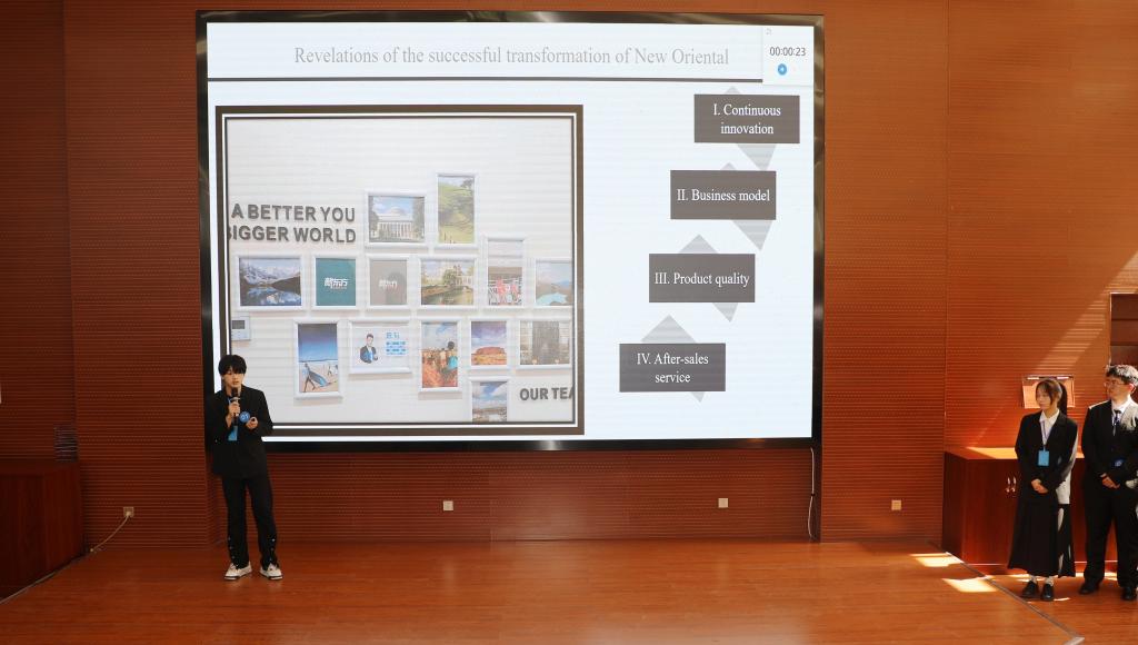 评委专家、福建亿学教育科技集团代表、我校教务处和外语教育与国际商务学院负责同志为获奖代表队颁发了奖牌。中国商务英语专业工作委员会副会长、浙江工商大学教授鲍文进行了精彩点评。