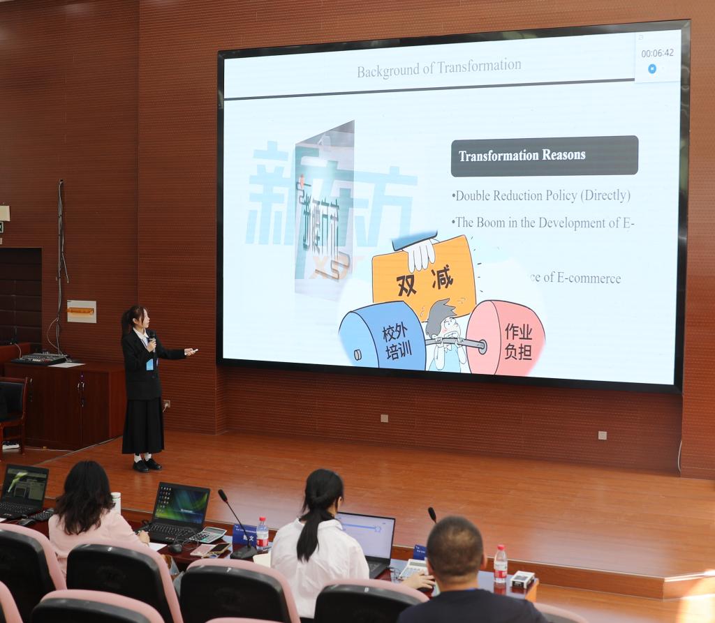 9日下午,2023年河北省普通高等学校商务英语专业建设论坛在我校外语教育与国际商务学院举行。河北省高等学校外语教学指导委员会秘书长王密卿参加论坛活动。中国商务英语专业工作委员会副会长、浙江工商大学教授鲍文作了题为《“数字+”背景下商务英语专业建设》的主题报告。福建亿学教育科技有限公司副总裁柳小刚围绕“外语相关专业跨境直播 产教融合的探索与实践”主题作报告。与会专家和代表就当前我省商务英语专业建设与发展进行了深入研讨,并在会后参观了我校校史馆、西部支教主题展馆等德育基础设施和冠军博物馆。