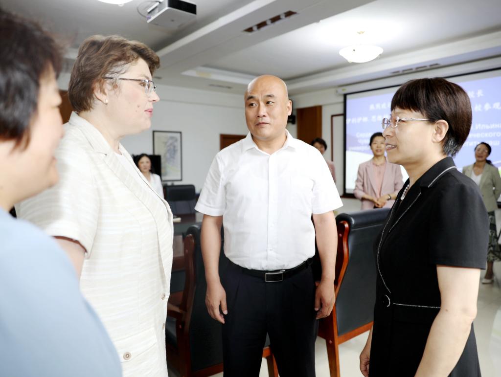 6月28日至30日,俄罗斯楚瓦什国立师范大学副校长伊利伊娜·思伟特兰娜·维克多洛芙娜、艺术与音乐教育系主任梅德韦杰娃·伊琳娜·亚历山大洛芙娜来我校访问。我校党委副书记、校长韩会玲,党委常委、副校长马丽娟,党委常委、副校长孙斌热情接待了来宾,在行政楼第五会议室举行座谈交流。