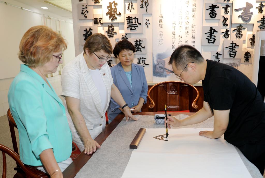 座谈会后,俄方代表在校领导的陪同下参观了回信石、二师书院、保定作家群文学馆、文学院书法文化长廊、冠军博物馆和校史馆等德育基础设施和教学场所。