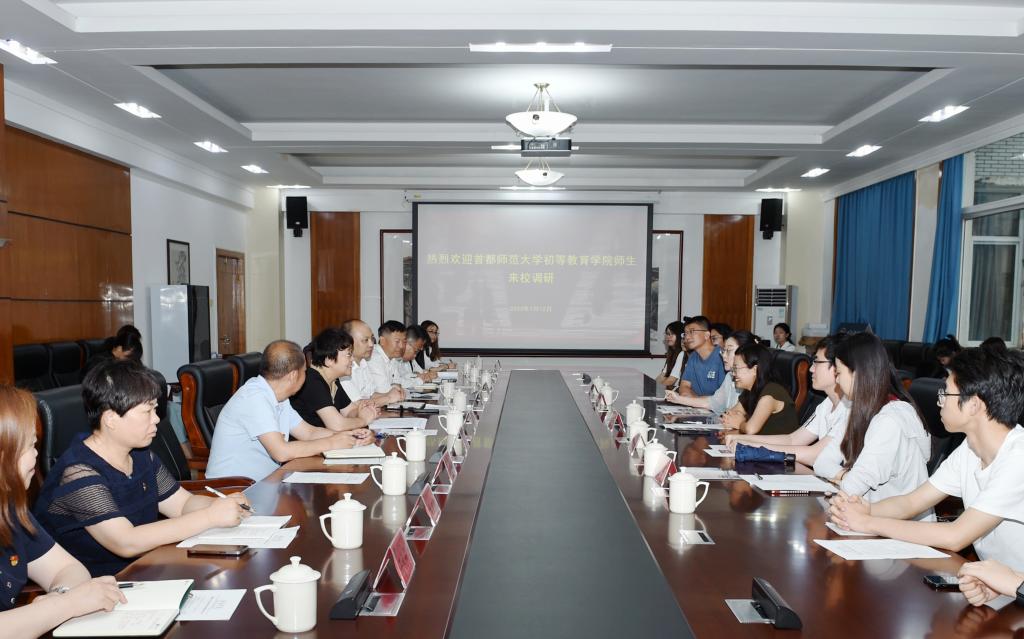 7月12日下午,首都师范大学初等教育学院党委副书记刘婧媛一行20余名师生来我校调研交流。校党委副书记张晓梅,宣传部、团委、教师教育学院负责同志和教师代表参加调研交流活动。
