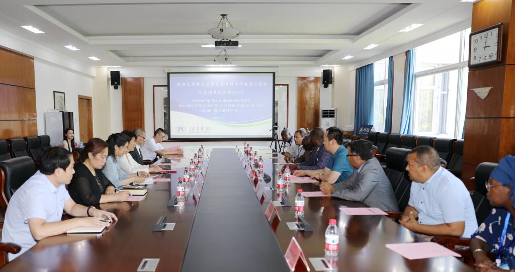 7月7日下午,河北大学毛里塔尼亚努瓦克肖特大学孔子学院中方院长郭广伟、外方院长小都(B'NEIJECK MOHAMEDOU)带领教育工作者代表团一行十人来我校访问交流。校党委常委、副校长马丽娟热情接待代表团一行,国际教育交流中心、文学院负责同志参加交流活动。