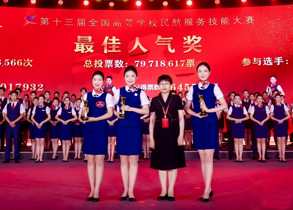 会上,我校获评“就业先进单位”荣誉称号;由地理与旅游学院航空服务艺术与管理专业、空中乘务专业30名学生组成的参赛队荣获“本科综合组”亚军;侯思祺、徐沛轩分获2023年全国高等学校民航服务技能大赛网络“最佳人气奖”冠亚军,并获得由北京广慧金通教育集团提供的赴阿提哈德航空公司的培训机会。