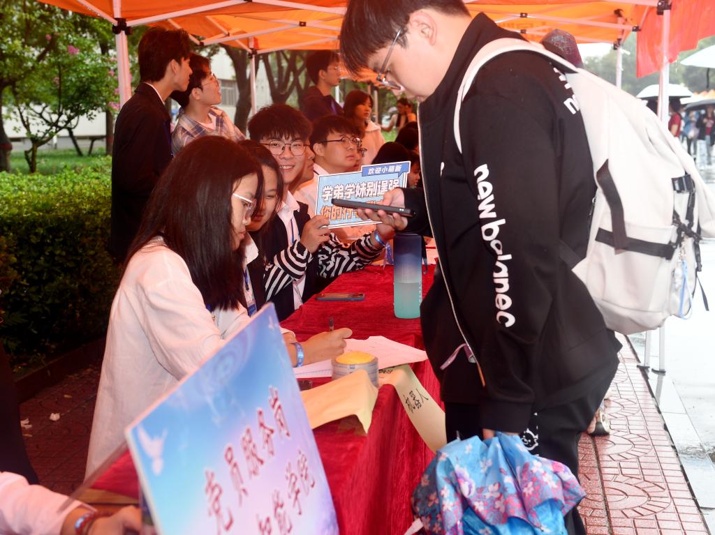 为做好今年的迎新工作,校党委高度重视,精心部署,各相关部门、二级学院通力协作,以细致的工作、饱满的热情为新生做好服务。巨大的欢迎展板矗立在一进校门的醒目位置,欢迎新生的条幅在雨中更显鲜艳,有趣的拍照打卡点仪式感满满。各二级学院在报到区精心布置展位,结合专业特色开展迎新互动活动。精心准备的欢迎礼物、老师和学生志愿者的热情引导,让2023级新生在暖心周到的迎新惊喜中开启美好大学生活。