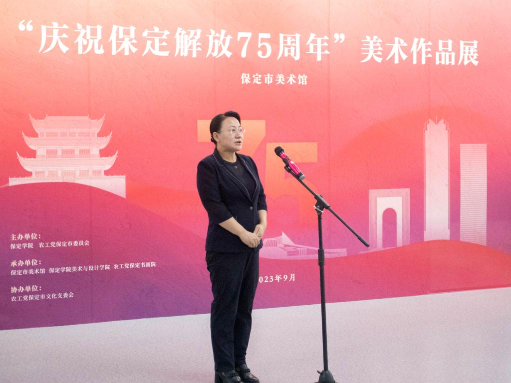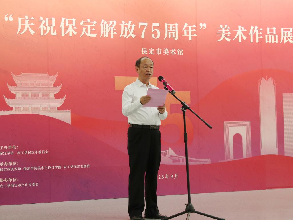 9月14日上午,由保定学院、农工党保定市委员会主办的“庆祝保定解放75周年”美术作品展在保定市美术馆开幕。