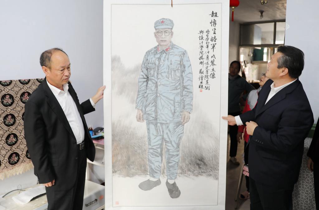 党委常委、副校长赵其国陪同看望。办公室、美术与设计学院负责同志及《赵博生将军戎装立像》创作者杨刚参加活动。