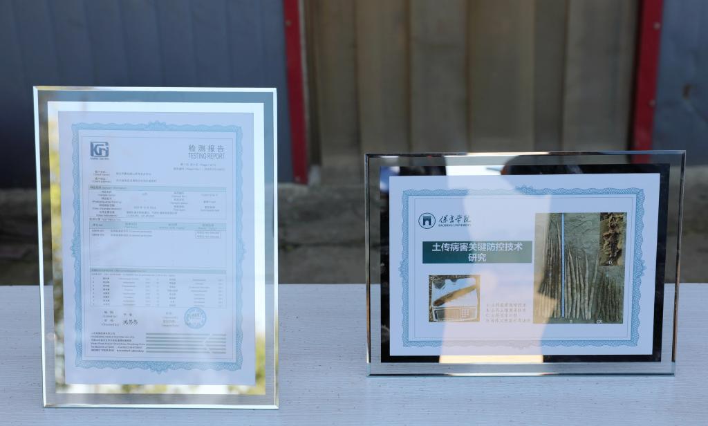 据悉,麻山药为清苑区特色经济作物,种植面积约为2万亩。由于多年连茬种植,水疔病、糊头病等毁灭性土传病害连年在种植田块发生,一般会造成减产20%,部分地块减产达50%,整田毁种时有发生,严重制约了当地麻山药产业发展。我校河北省土传病害绿色防控技术创新中心的土壤熏蒸消毒处理试验于今年3月在南宋村开展以来,已取得令人欣喜的阶段性成果。