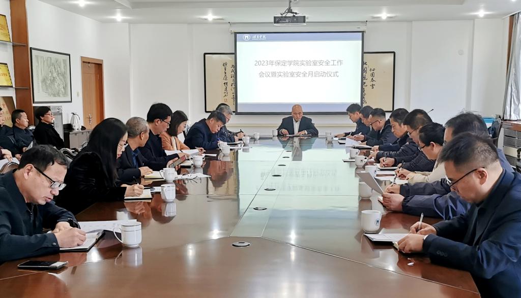 11月9日下午,2023年保定学院实验室安全工作会议暨实验室安全月启动仪式在行政楼第二会议室举行。党委常委、副校长孙斌,实验室安全工作领导小组成员单位、相关二级学院负责同志,实验室主任,实验实训中心全体人员参加会议。